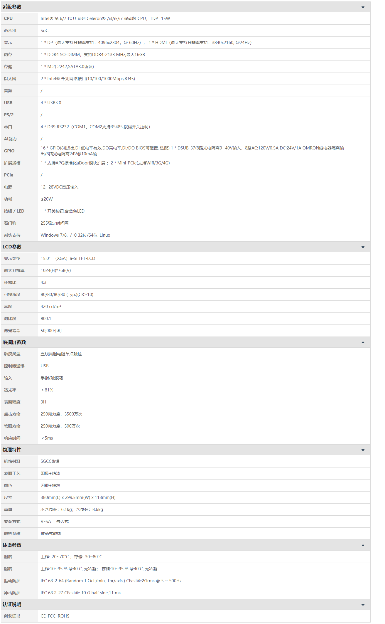 P150RF-E81采用全模具壓鑄成型的鋁合金殼體,使用大面積鋁鰭無風(fēng)扇散熱設(shè)計,保障其堅固機身和高可靠穩(wěn)定運行。深度的模塊化設(shè)計可實現(xiàn)雙Intel千兆網(wǎng)絡(luò)或高速隔離IO,以及多IO接口的靈活擴展,更支持CPU核心模塊的快速升級迭代。前面板使用美觀PVC膜和高溫五線電阻式觸摸屏,達到IP65防護等級。實現(xiàn)最小尺寸的標(biāo)準(zhǔn)PCI/PCIe擴展卡的應(yīng)用支持,寬壓電源輸入、雙隔離485、多路高速USB3.0和高清顯示輸出等特點, 適用于工業(yè)4.0、機器視覺、高速運算等多種不同應(yīng)用場景。