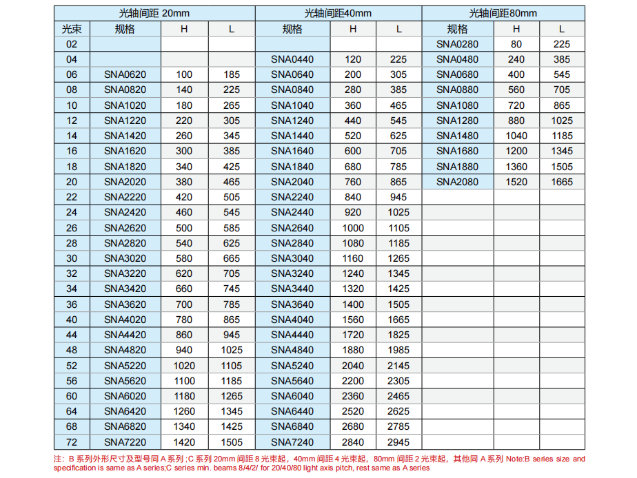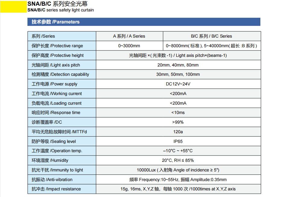 SNA/B/C系列安全光幕