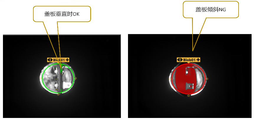 使用BOLB面積工具進(jìn)行有無,以及傾斜的檢測。