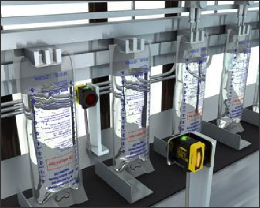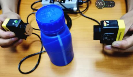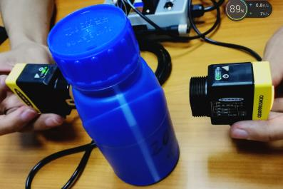 盛農(nóng)藥的瓶子是塑料瓶,肉眼看起來(lái)完全不透明。傳統(tǒng)的方案是稱重,由于瓶本身的重量有差異,很難保證精確控制。有的客戶采用視覺(jué)檢測(cè),對(duì)瓶子打背光,成本比較高。采用高能型QS30H2O能可靠檢測(cè)瓶子內(nèi)農(nóng)藥的液位,非?煽。通過(guò)加裝光縫,實(shí)現(xiàn)液位的精確檢測(cè)。