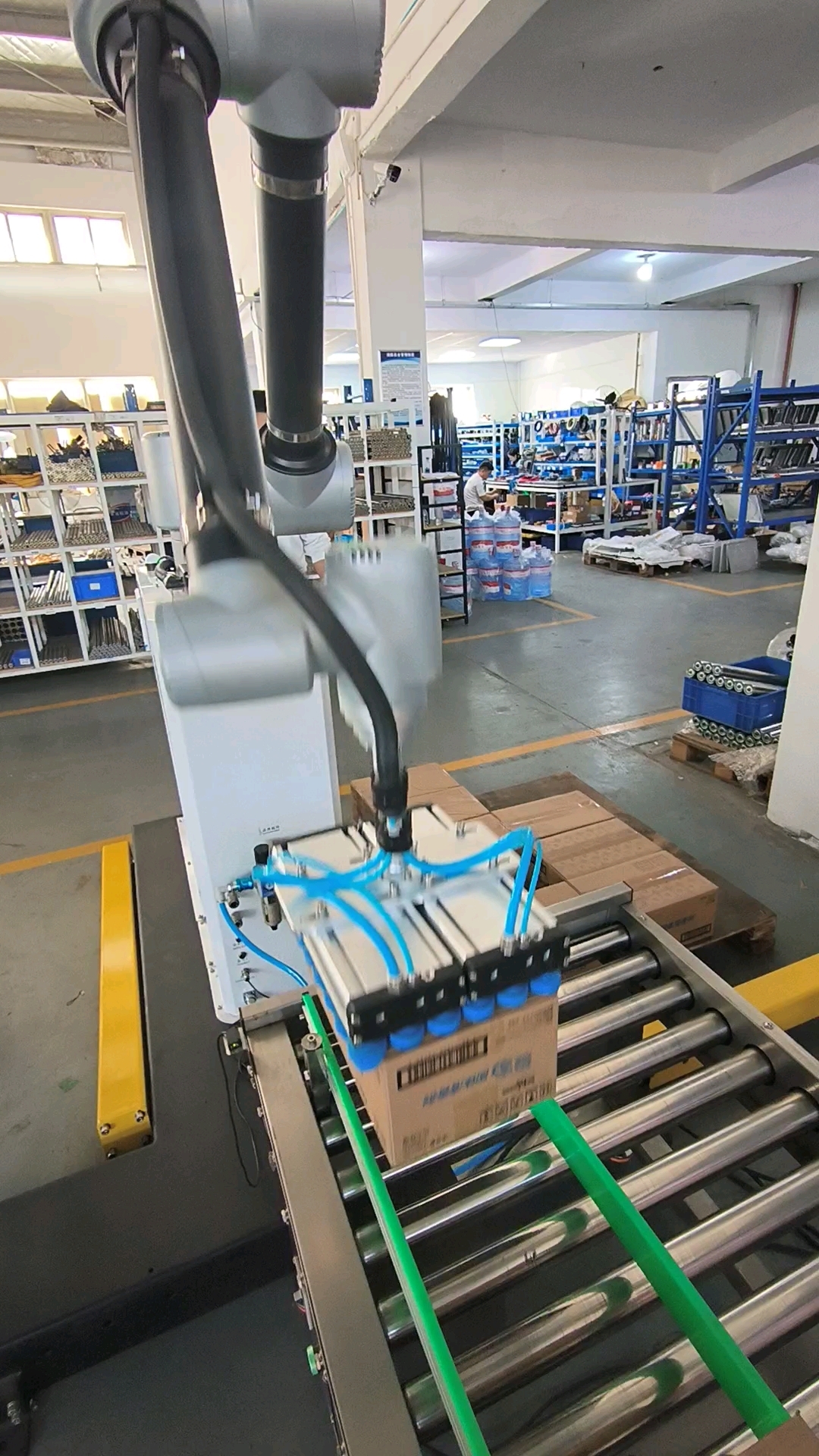 一家日化企業(yè)因廠房老舊,無法安裝傳統(tǒng)碼垛設備。采用協(xié)作機器人搭配升降柱的方案,僅需1.5m×1m占地空間,完成3層碼垛,碼放高度達2.2米,投資回收周期縮短至12個月。