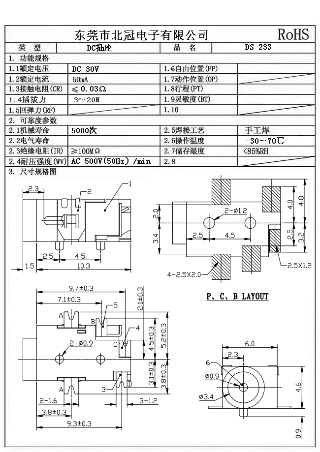 Typical Specifications 1. Rating : DC 30V 0.5A 2. Contact Resistance : 70?Max 3.Lnsulation Resistance: DC500V 1Minute 4.Operating Temperature Range: -25℃+80℃ 5.Ambient Humidity Used: ≤85%RH 6. Operating Force : 3-20N 7. Operating Life : 5,000Cycles