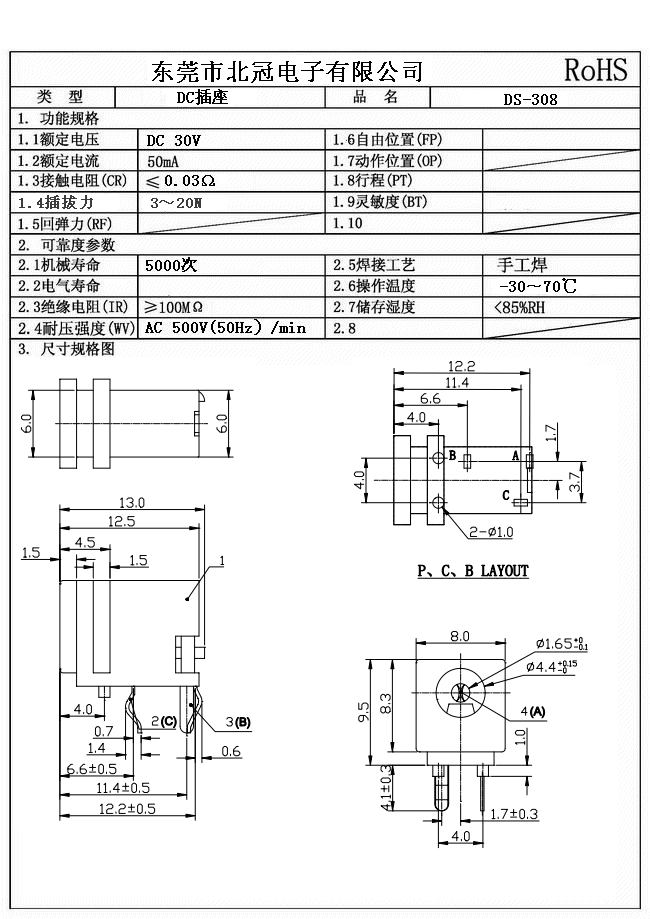 Typical Specifications 1. Rating : DC 30V 0.5A 2. Contact Resistance : 70?Max 3.Lnsulation Resistance: DC500V 1Minute 4.Operating Temperature Range: -25℃+80℃ 5.Ambient Humidity Used: ≤85%RH 6. Operating Force : 3-20N 7. Operating Life : 5,000Cycles