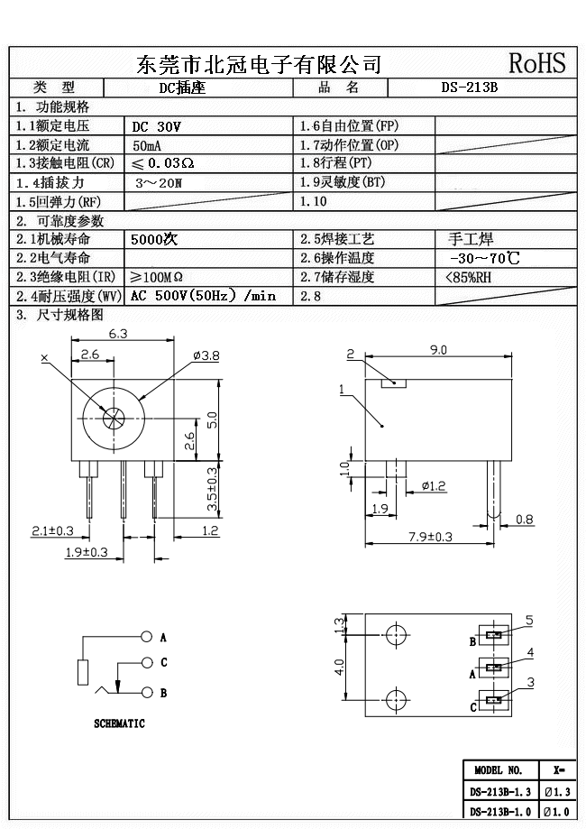 Typical Specifications 1. Rating : DC 30V 0.5A 2. Contact Resistance : 70ΩMax 3.Lnsulation Resistance: DC500V 1Minute 4.Operating Temperature Range: -25℃+80℃ 5.Ambient Humidity Used: ≤85%RH 6. Operating Force : 3-20N 7. Operating Life : 5,000Cycles