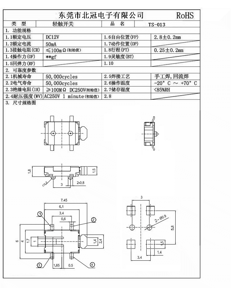 產(chǎn)品名稱:TS-013輕觸開關(guān)
