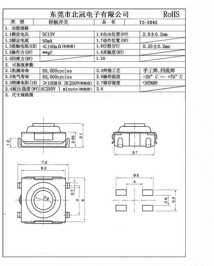 產(chǎn)品名稱(chēng):TS-284S輕觸開(kāi)關(guān)