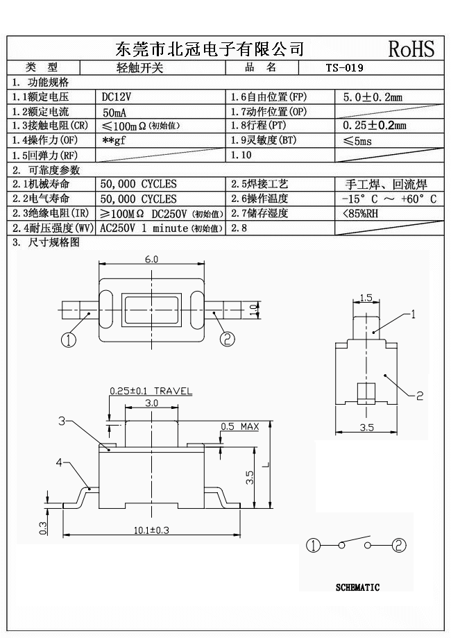 3.Lnsulation Resistance: ≥100mΩ DC250V