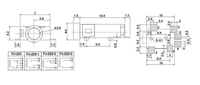產(chǎn)品名稱:PJ-223 品名:2.5耳機插座 |