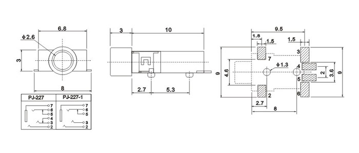 產(chǎn)品名稱:PJ-227 品名:2.5耳機(jī)插座 |