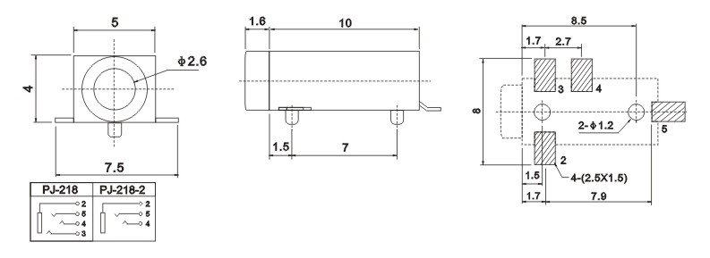 產(chǎn)品名稱:PJ-218 品名:2.5耳機(jī)插座 |
