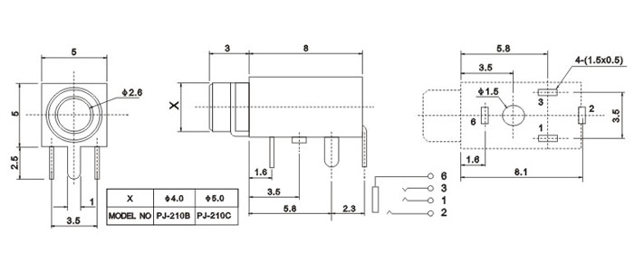 產(chǎn)品名稱:PJ-210B 品名:2.5耳機(jī)插座 |