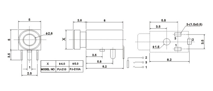 產(chǎn)品名稱:PJ-210 品名:2.5耳機插座 |