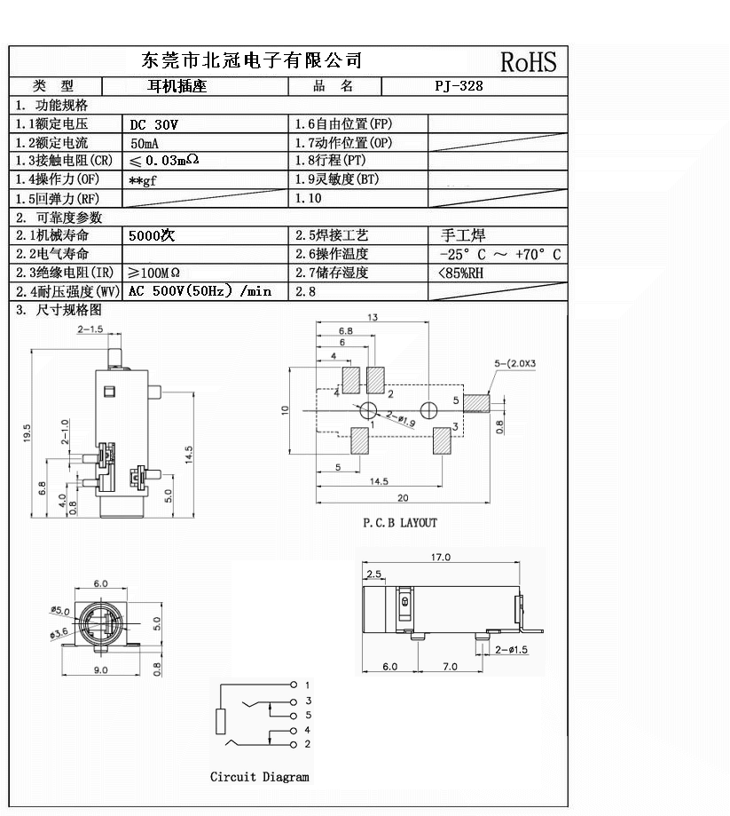 Typical Specifications Rating:0.5A 30V DC Contact Resistance:100 mΩ max. Operating temperature:-20℃~70℃ Operating force:3-20N Operating Life:5,000cycles