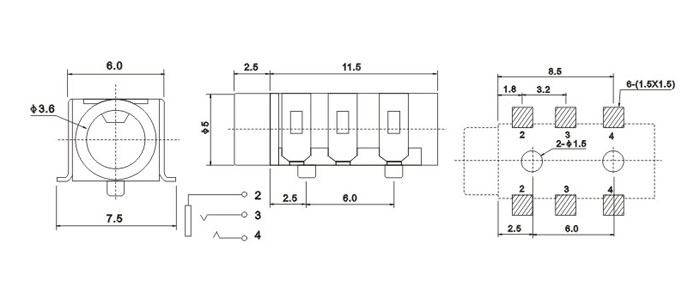 產(chǎn)品名稱(chēng):PJ-313D 品名:3.5耳機(jī)插座 |