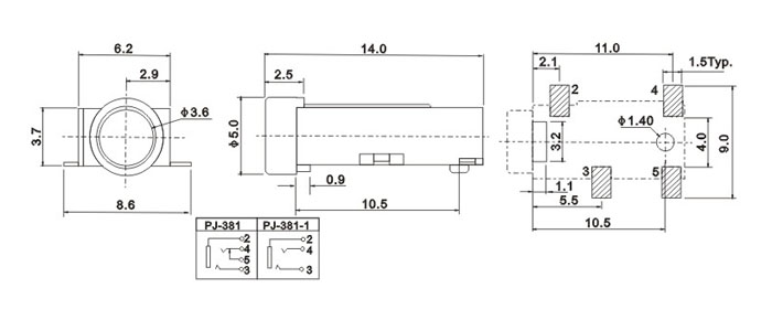 產(chǎn)品名稱:PJ-381 品名:3.5耳機插座 |