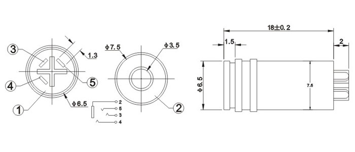 品名:3.5耳機插座 耳機插座技術參數(shù): 1.額定負荷:0.5A 30V DC 2.按觸電阻:100 mΩ max. 3.使用溫度:-20℃~70℃ 4.插拔力:3-20N 5.使用壽命:5,000cycles 耳機插座主要組成部件: 1.塑膠底座 2.磷銅或鈹銅簧片
