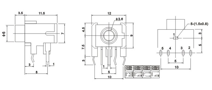 產(chǎn)品名稱:PJ-306J 品名:3.5耳機(jī)插座 |