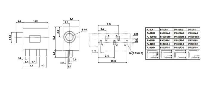 產(chǎn)品名稱:PJ-325C 品名:3.5耳機插座 |
