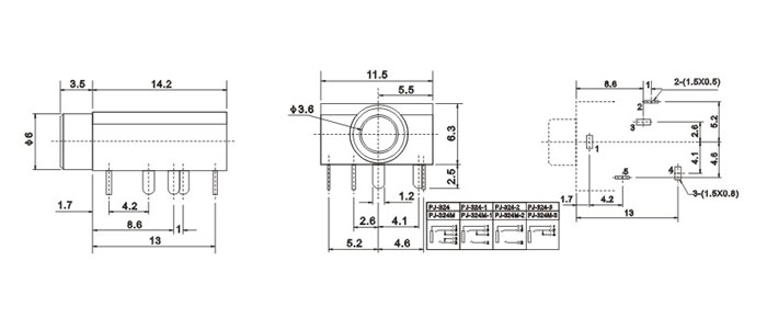 產(chǎn)品名稱:PJ-324 品名:3.5耳機(jī)插座 |