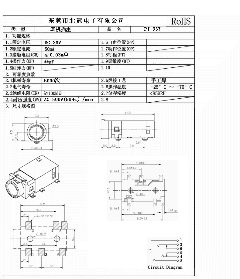 Typical Specifications Rating:0.5A 30V DC Contact Resistance:100 mΩ max. Operating temperature:-20℃~70℃ Operating force:3-20N Operating Life:5,000cycles