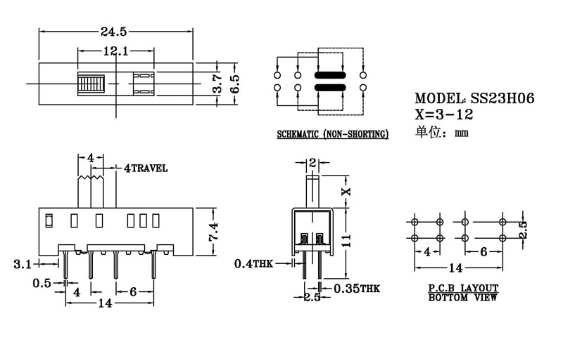 產品名稱:SS-23H06撥動開關