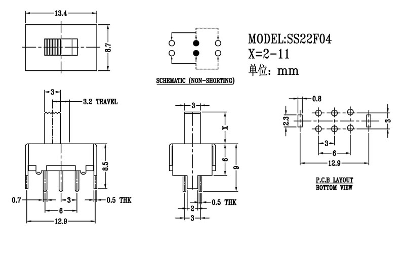 產(chǎn)品名稱:SS-22F04撥動開關(guān)